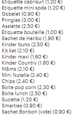 Prix à l'unité / article.